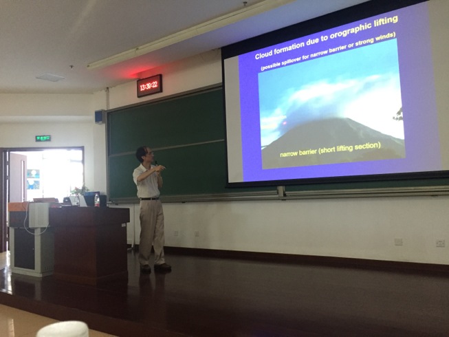 Prof. Cheng-Ku Yu talking about the formation mechanism of orographic precipitation