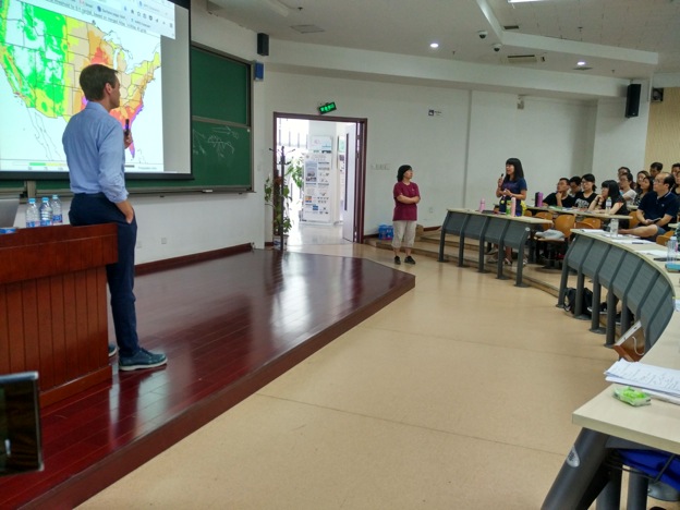 Prof. Ming Xue introducing the geographical distribution of extreme heavy rainfall in China
