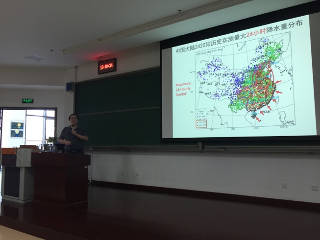 Prof. Ming Xue introducing the geographical distribution of extreme heavy rainfall in China