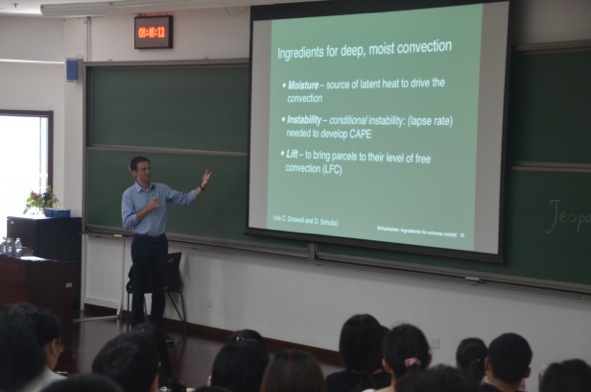 The “Extreme Heavy Rainfall International Summer School” was held in room 208 of the New Natural Science Building at Peking University (PKU) during August 2-4, 2016. It was chaired by Professor Zhiyong Meng, the associate head of the department of atmospheric and oceanic sciences. Professor Yongyun Hu, the department head, delivered the opening speech, giving a warm welcome to the participants, and wishing the summer school a great success.