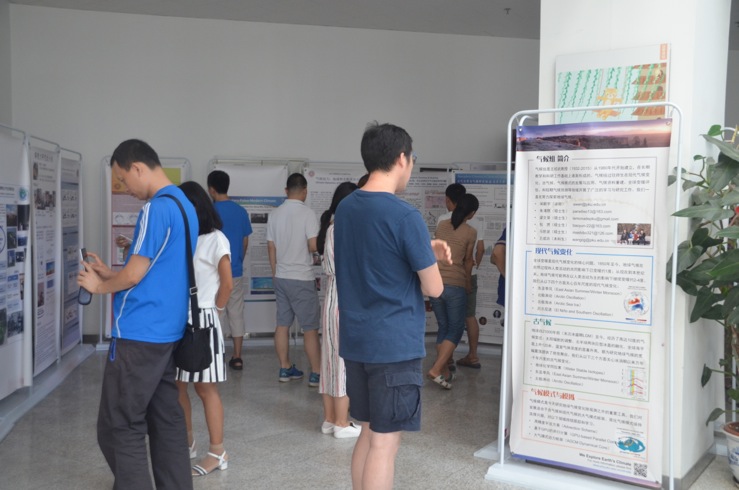The participants viewing the posters on the introduction to the research groups of the Department of Atmospheric and Oceanic Sciences of PKU
