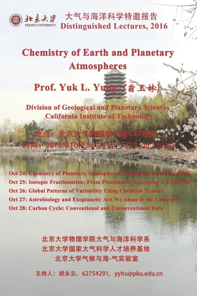 主讲:Professor Yuk L. Yung,  Division of Geological and Planetary Sciences,California Institute of Technology