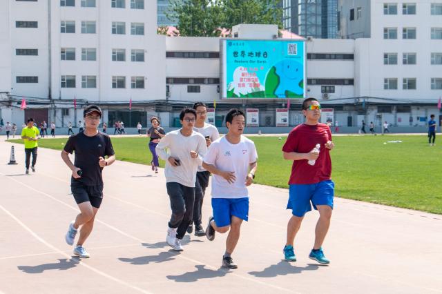 13:40,热身结束后,正式开跑。本次活动基于“绿色地球,低碳生活”的理念,结合“世界地球日”(4月22日)和“世界气象日”(3月23日)的日期,设置跑步里程分别为4.22公里与7.45公里(4.22+3.23)两档,师生使用任意记步软件记录下的里程数超过任意一档即可认为完成活动,能够拿到精美纪念品与一次或两次的抽奖机会。