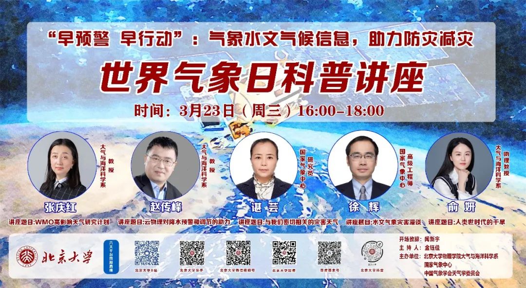 2022年3月23日下午16:00,世界气象日——“‘早预警 早行动’:气象水文气候信息,助力防灾减灾”线上直播活动在北京大学物理学院图书阅览室拉开序幕。