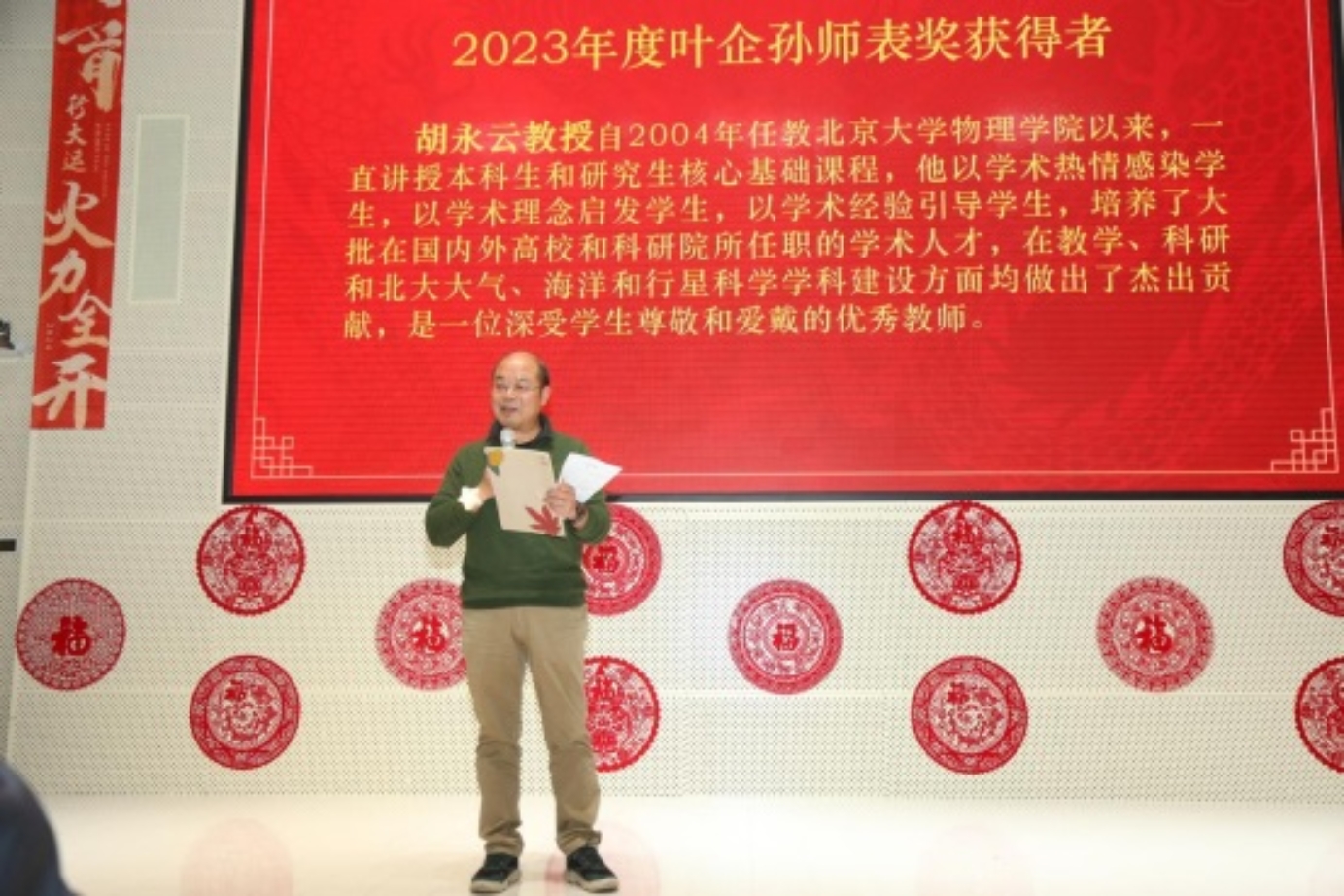 2023年12月29日下午,北京大学物理学院举办教职工大会,会上举行了叶企孙师表奖颁奖仪式。必一·运动(B-Sports)官方网站胡永云教授荣获2023年度叶企孙师表奖,北京大学校长龚旗煌院士为其颁奖。