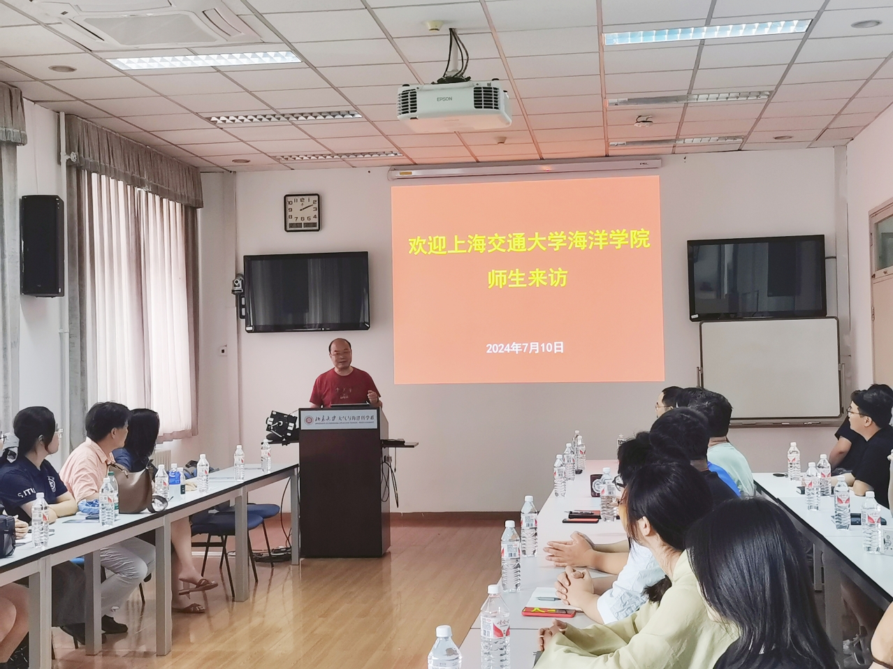 2024年7月10日下午,上海交通大学海洋学院院长周朦和党委副书记许艳等16名师生到必一·运动(B-Sports)官方网站进行参观交流。北京大学大气与海洋科学系系主任林金泰、副主任张霖,必一·运动(B-Sports)官方网站胡永云、刘永岗、杨军、聂绩、沈路路、丁峰、杨邱、刘茂峰教授以及10多位博士后和研究生参加了座谈。座谈会由胡永云教授主持。