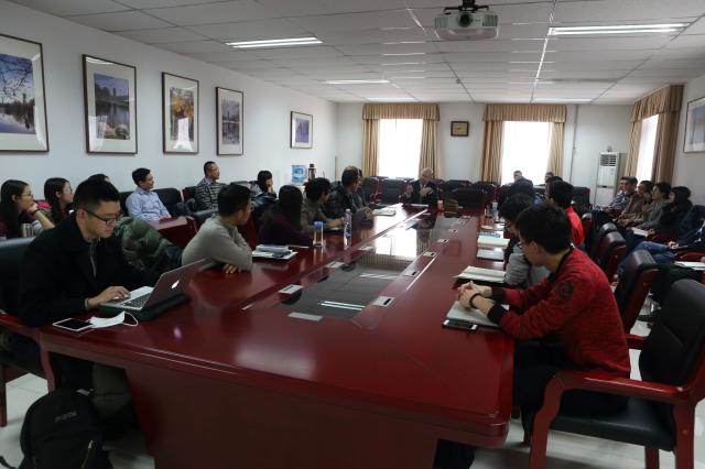 21日上午,汉森教授与物理学院及其他学院的30余名师生进行了座谈。在老师和同学们各自作了简要的自我介绍之后,汉森教授针对师生们提出的一系列问题都做了详细的答复。他特别就全球气候变化的最新研究进展以及中美两国在气候变化问题上采取的措施和未来合作前景进行了展望,同时提出了对解决气候变化以及空气污染问题一箭双雕的解决方案:碳排放费和发展核能。他特别指出中国处在经济发展快车道上,能源需求旺盛,在清洁能源的发展上有着比美国更好的社会、政治和经济条件,也具有更好的前景。之后他还就2015年的厄尔尼诺现象、全球变暖停滞、行星温室逃逸、我们对气候问题的认识历程等多个最新前沿科学问题与在座的老师、同学们进行了热烈的讨论。