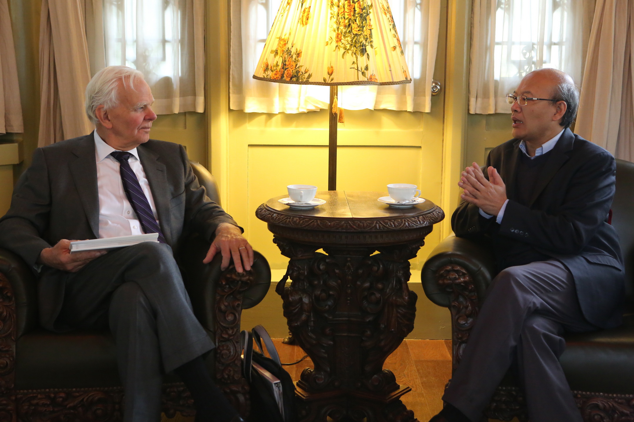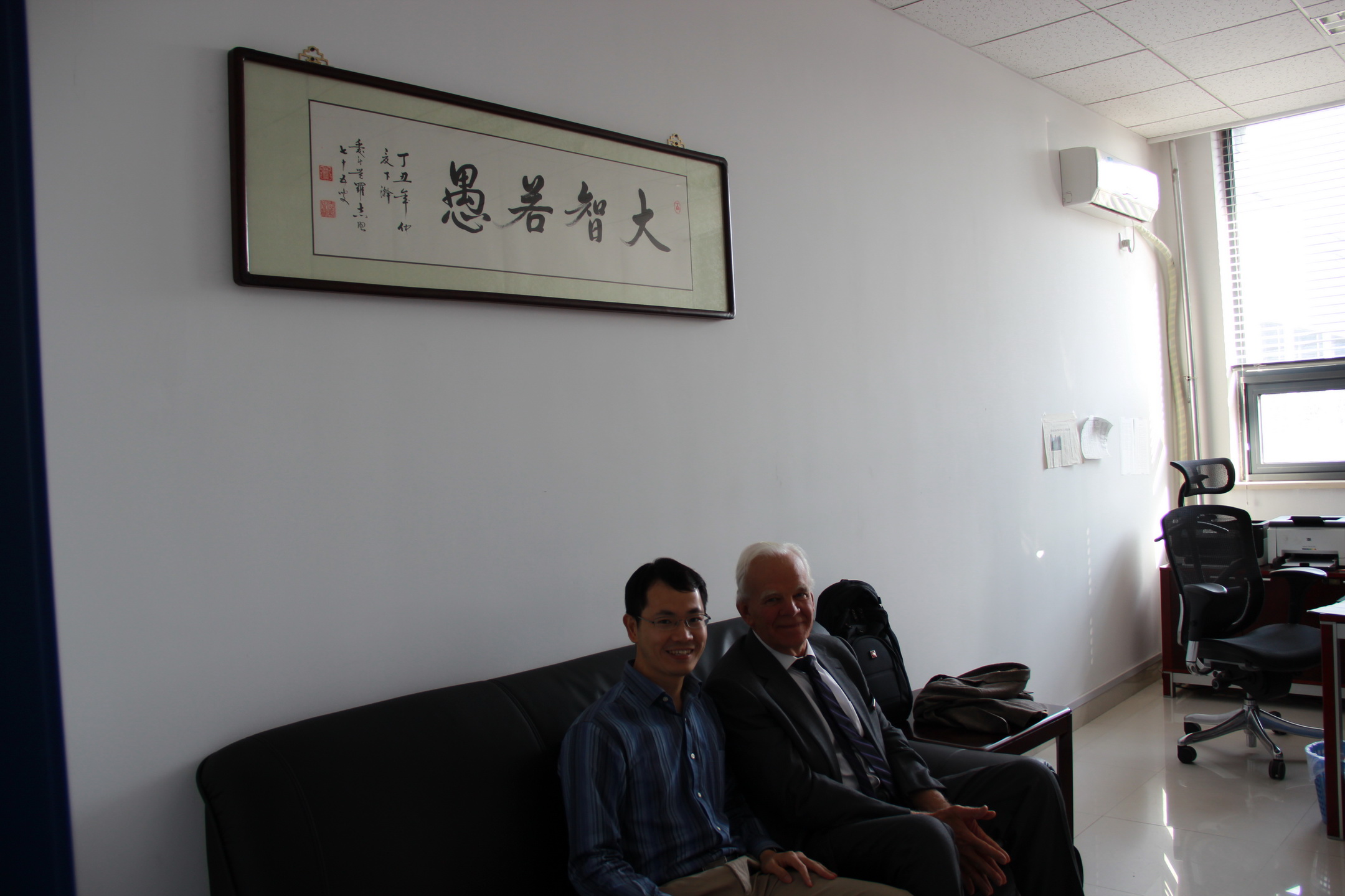 17日上午,北京大学校长王恩哥院士、物理学院院长助理胡永云教授和国际合作部严军副部长会见了Anderson教授,王恩哥校长向Anderson教授颁发了北京大学“大学堂”顶尖学者奖牌和北京大学客座教授聘书。