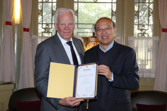 王恩哥校长为Anderson教授颁发北京大学客座教授聘书