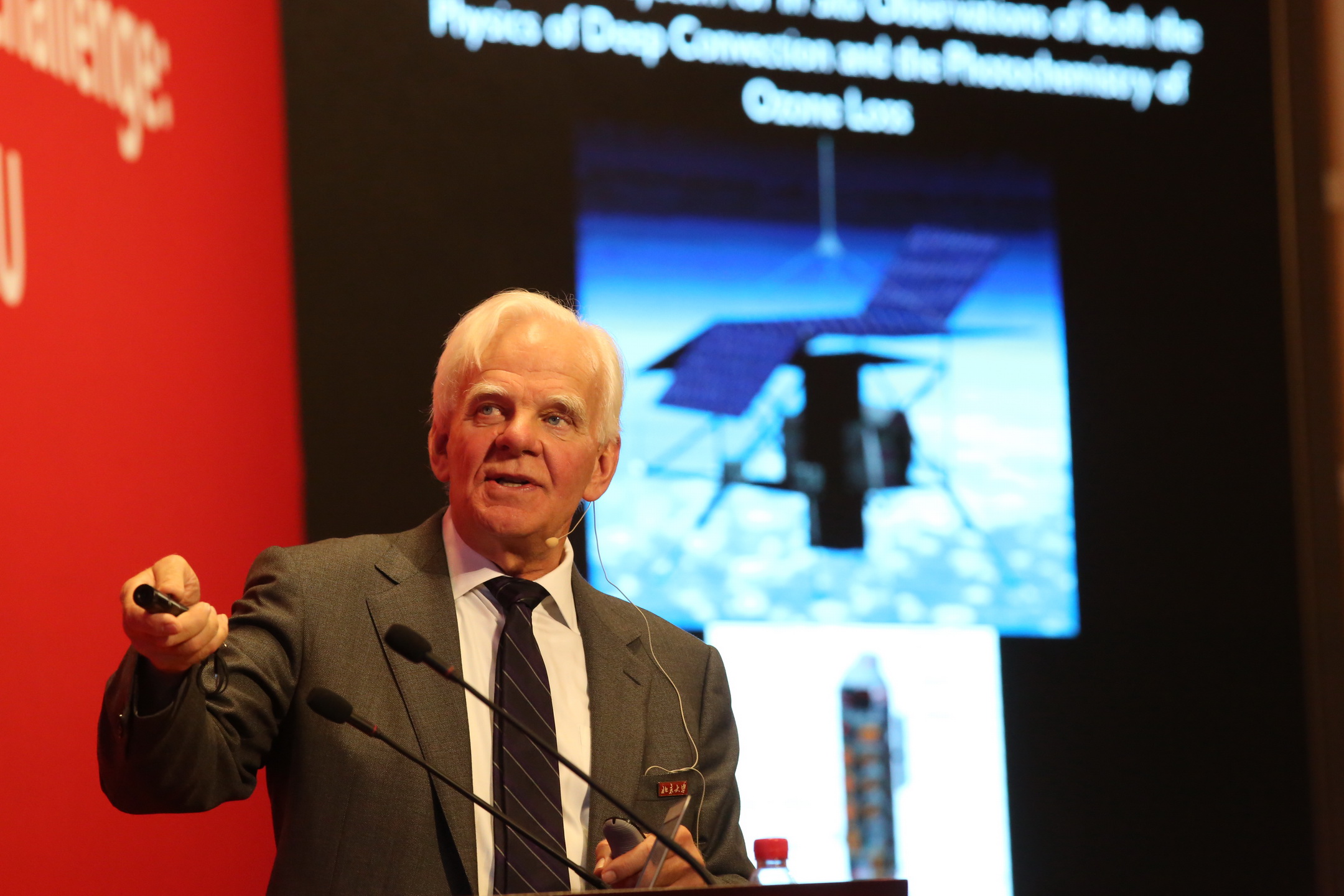17日下午,Anderson教授在英杰交流中心阳光大厅作题目为“Chemistry and Physics of Climate Change and Global Challenges: Research Collaboration between Harvard and Peking University”的“大学堂顶尖学者讲学计划”演讲。来自物理、数学、化学、环境、地空、工学等院系以及清华、北师大、中科院、中国气象局等单位的近300名师生聆听了Anderson教授的报告。报告会由胡永云教授主持。