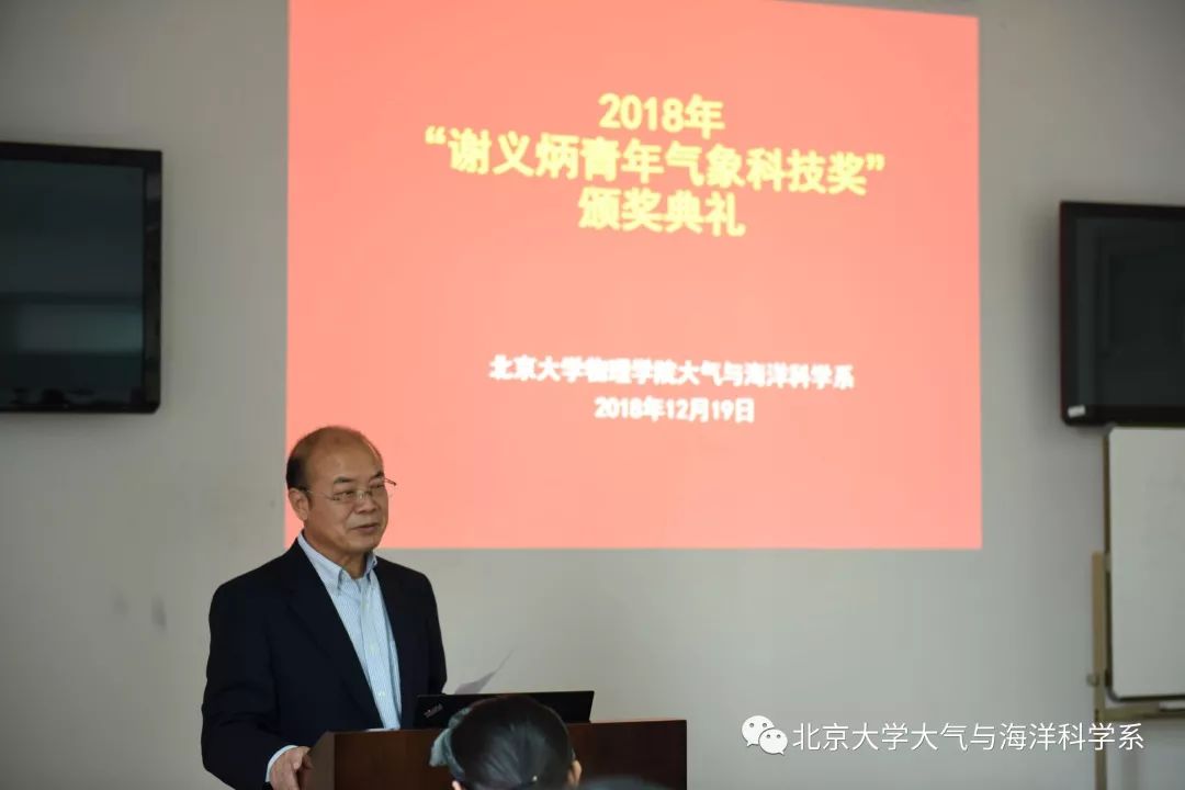 2018年“谢义炳青年气象科技奖”颁奖典礼于2018年12月19日下午在北京大学大气与海洋科学系顺利举办。谢义炳先生的女儿—北京市气象局谢庄研究员,必一·运动(B-Sports)官方网站主任胡永云教授,必一·运动(B-Sports)官方网站毛节泰教授、陶祖钰教授,来自各气象类院校和科研单位的获奖人员以及大气与海洋科学系的部分师生参加了颁奖仪式。