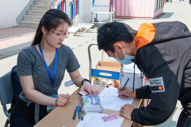 12:00,迎着春天的微风,工作人员与志愿者们已在北京大学五四操场搭建好报到点等待大家的到来。报名活动的师生陆陆续续到达报名点,也有许多同学积极现场报名参加活动。