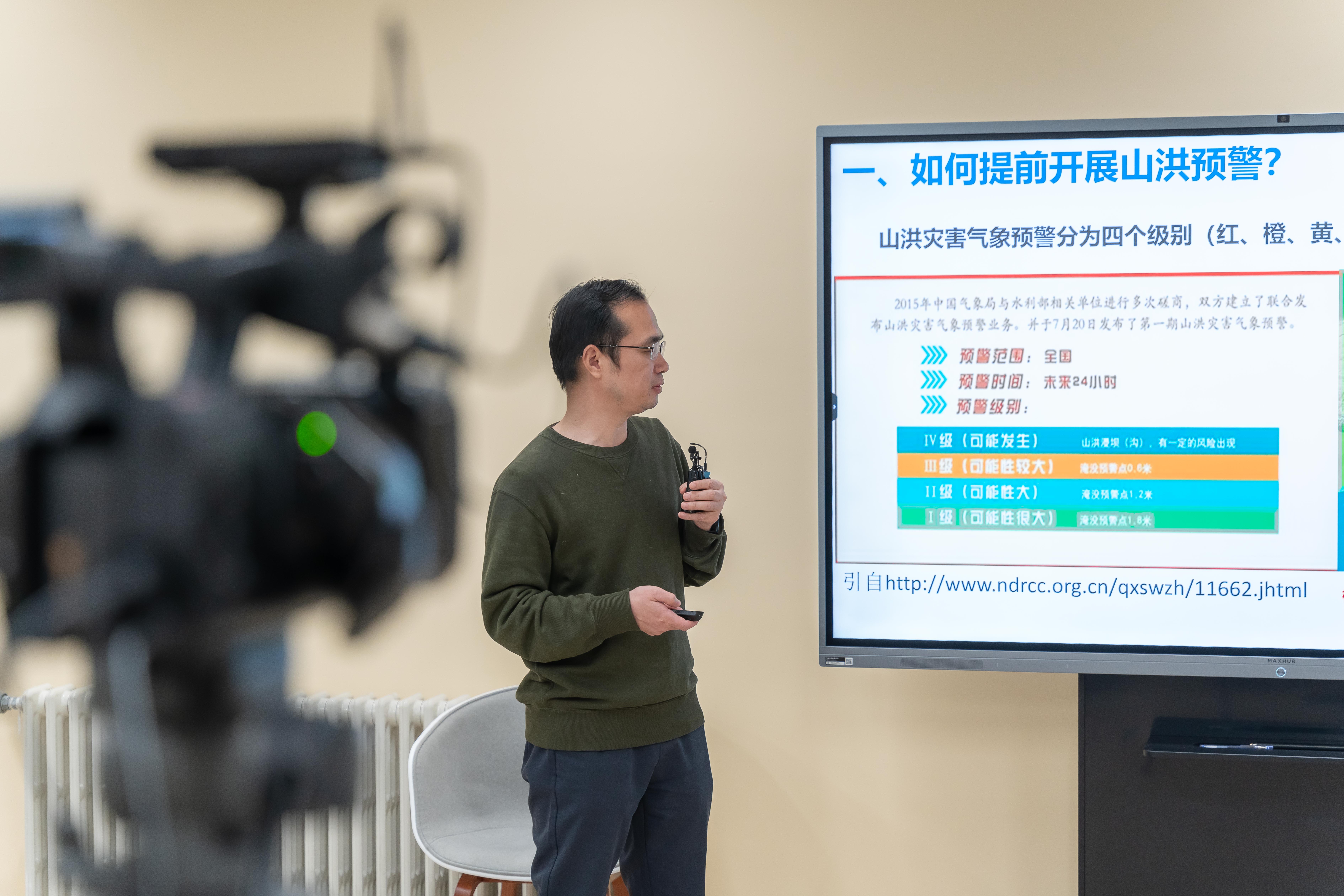 国家气象中心高级工程师徐辉老师从水文气象灾害的定义入手,娓娓道来了山洪、泥石流、滑坡、洪涝灾害的发生条件、典型事件和预警分类。从各类水文气象灾害的事件出发,表明“及时预警、快速行动”的必要所在。最后他也为大家“支招”,提出公众预防这些灾害时可以使用的“锦囊妙计”。