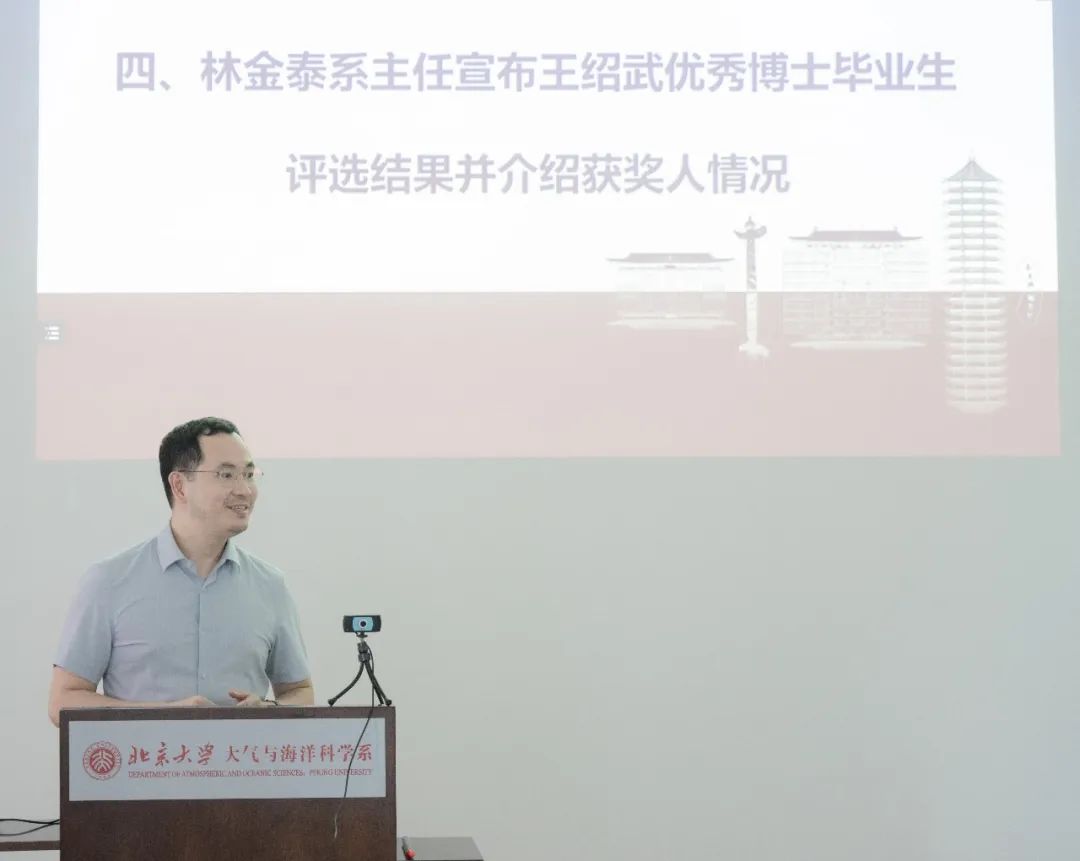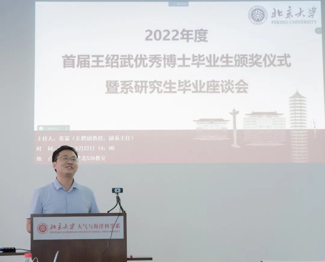 2022年6月27日下午,2022年度首届“王绍武优秀博士毕业生奖”颁奖仪式在北京大学物理学院顺利举办。清华大学地球系统科学系罗勇教授、必一·运动(B-Sports)官方网站胡永云教授、系主任林金泰研究员和副系主任张霖研究员出席了颁奖仪式。大气与海洋科学系部分老师以及2022届博士毕业研究生参加了颁奖仪式。