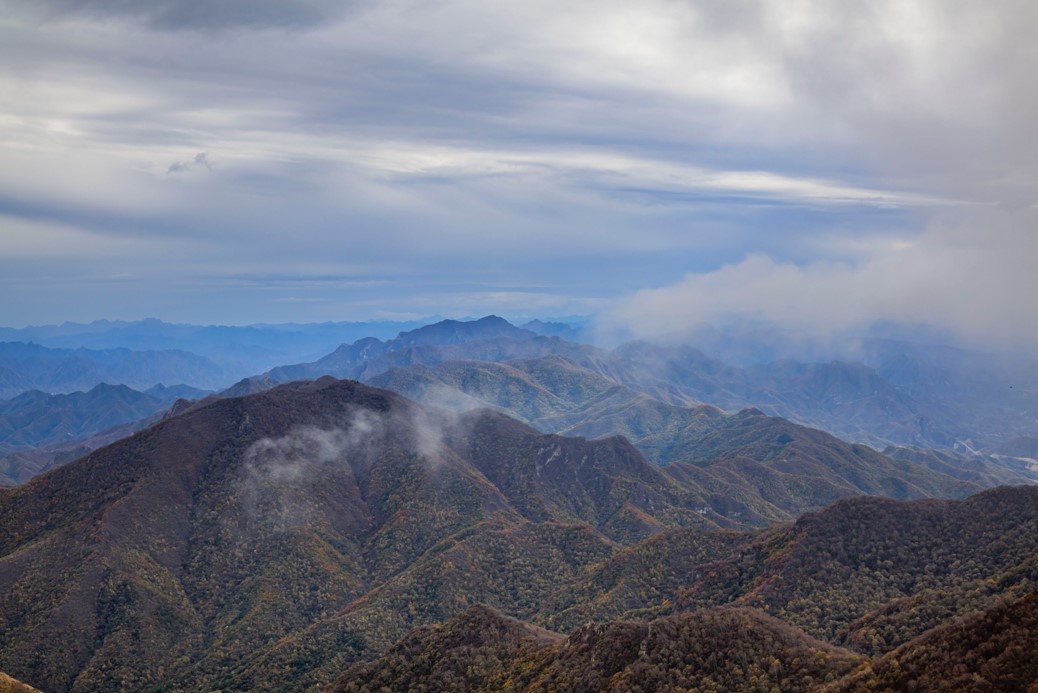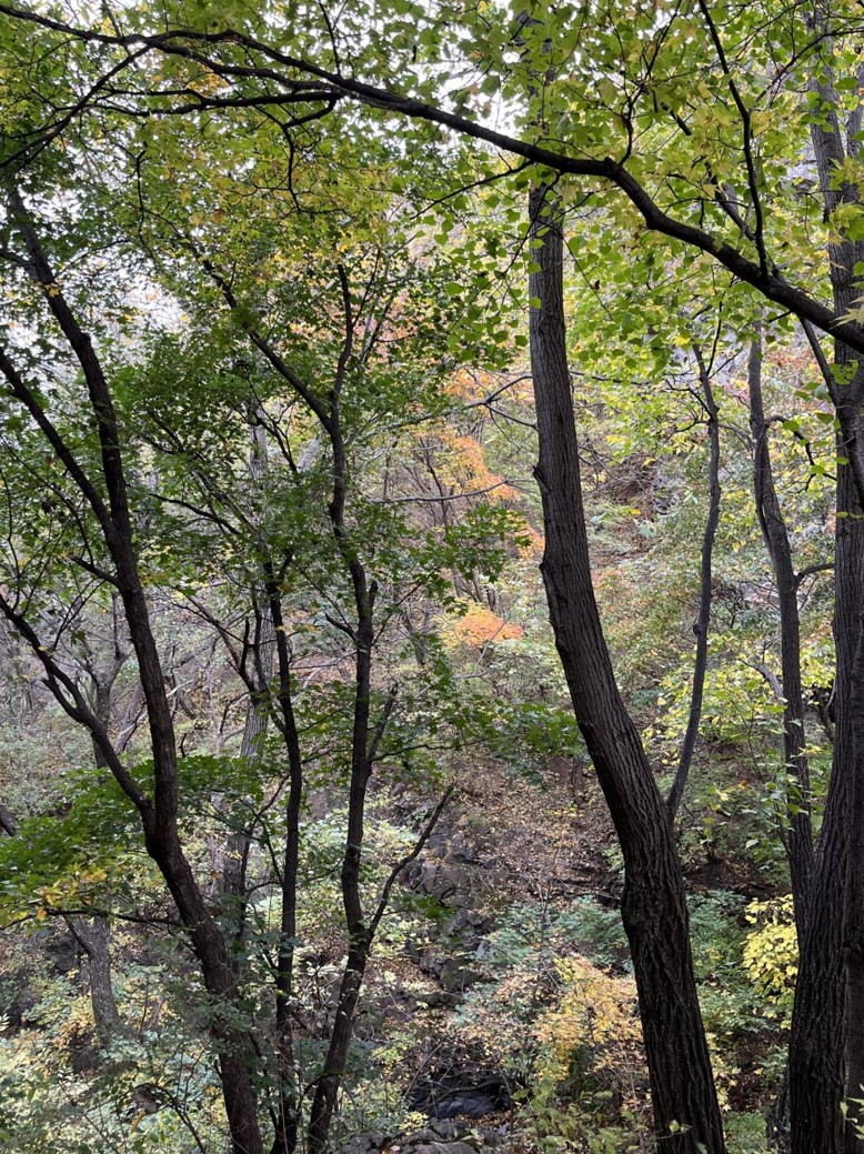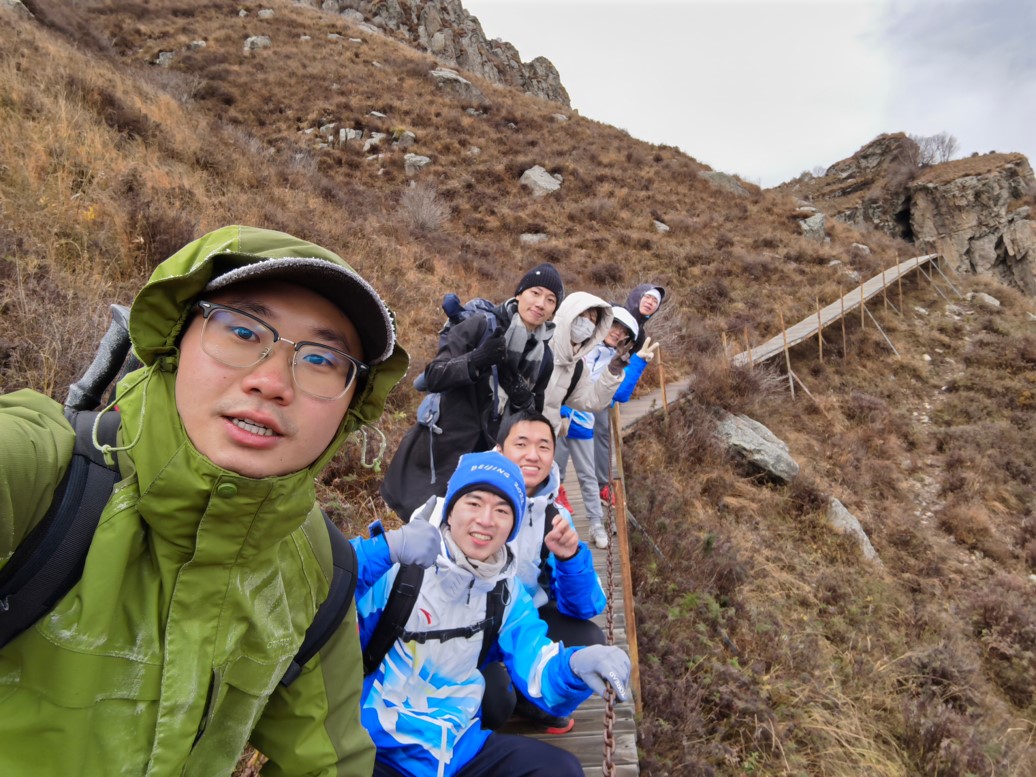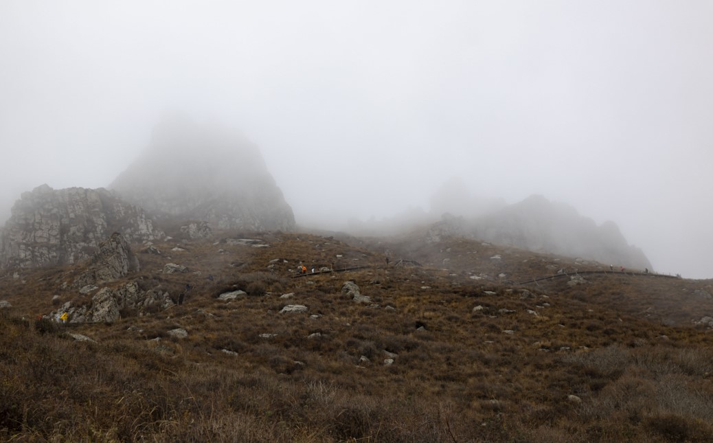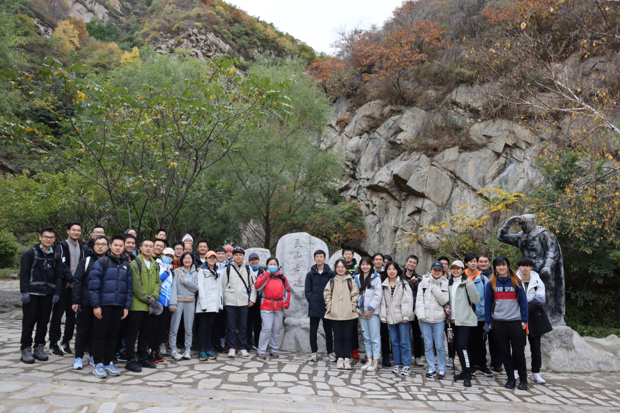 登山过程:约11:00点,一行人到达灵山脚下的聚灵峡景区入口,海拔一千米左右。北京此时正在经历一次猛烈的寒潮天气,大风夹杂着小雨。简单午餐后,同学们自此开始近3个多小时的爬山和2个多小时的下山过程。此时的灵山正值初秋时节,最初的爬升过程被树木溪水环绕,之后队伍爬至山间开阔处,眼前豁然开朗。继续爬升,空气逐渐变得稀薄,周围的阔叶林景观变为高山草甸,可以看到牦牛的踪迹。此时体感温度也逐渐下降到零度以下,风力极大,木栈道斜面在雨后变得湿滑充满危险。此时,许多同学考虑自身体力和恶劣天气选择折返下山,还有十几位同学选择继续冲顶。在彼此的支持和鼓励下,最终有十一位同学成功登顶,到达海拔2303米的灵山顶峰。下午3点过后,所有同学不论到达什么位置,都先后转入下山过程,按原路折返。下午六点半,同学们在山脚下集合乘车返回,整个活动结束。