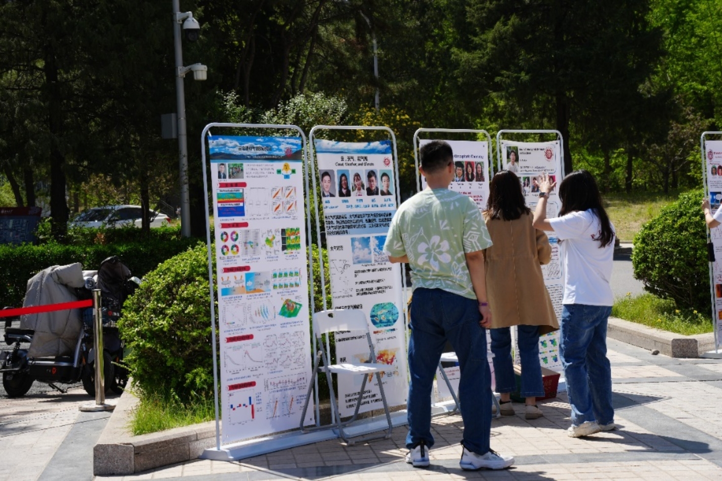 在科普展览单元,系内的各个研究组、师生和校友准备了一系列前沿研究海报和科普海报,以中英文摘要、气象实验照片、漫画等多种形式,向全校师生展示了大气与海洋科学的研究进展。此外,现场还邀请了国家气象中心研究员谌芸、高级工程师徐辉,以及必一·运动(B-Sports)官方网站教授胡永云、副主任闻新宇、助理教授聂绩、俞妍、丁峰等多位专家学者莅临,他们向来访师生介绍前沿科学知识与研究内容,旨在让大家全面了解全球变暖、“双碳”目标等关键科学事实与政策背景,激发校内师生对大气与海洋科学的兴趣。