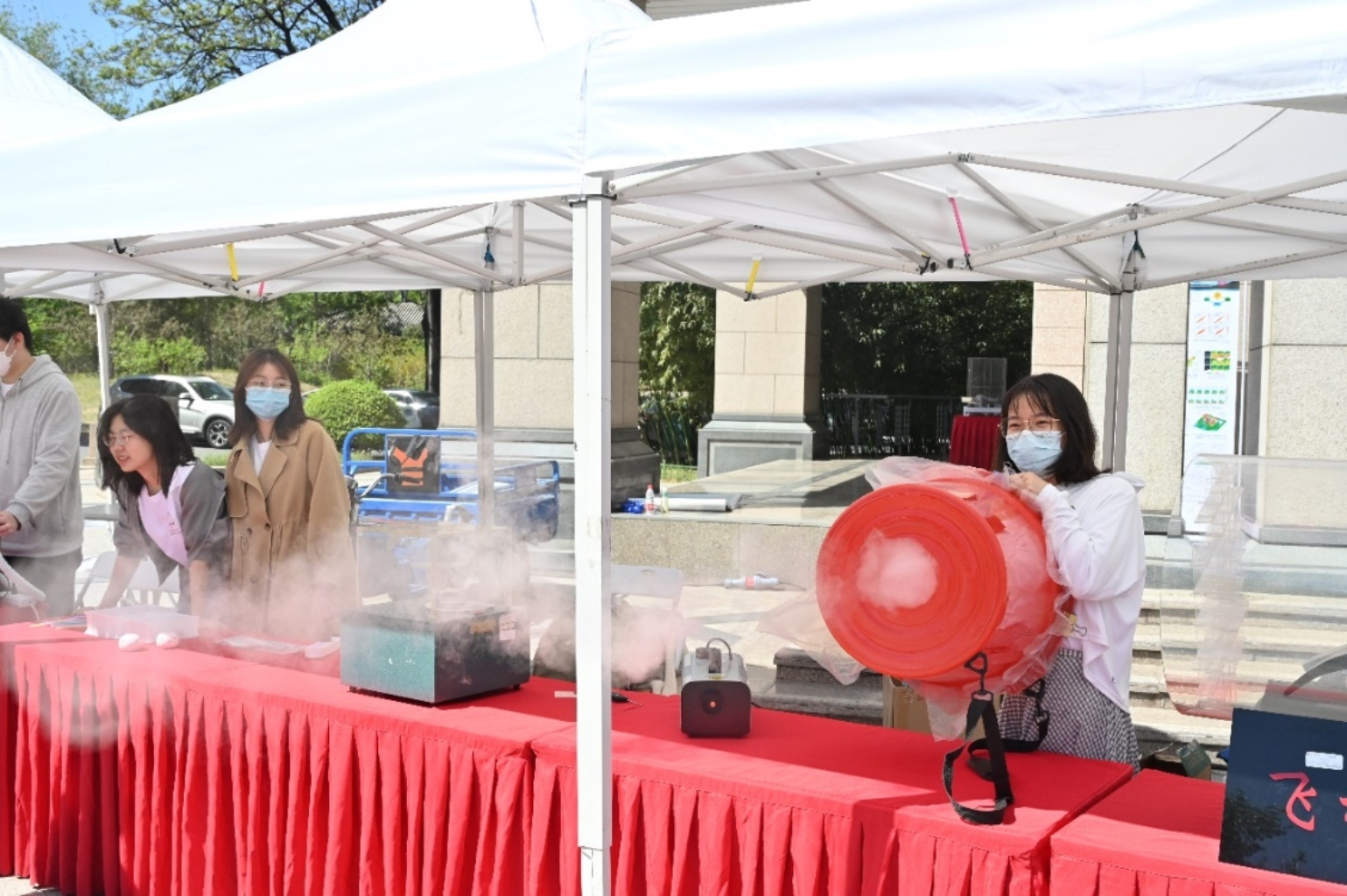 在趣味游戏单元,系里准备了“科普问答”、“云图猜猜猜”和“气象科普大富翁”共三个趣味游戏,旨在让大家在参与科普集市活动的同时,以实践、猜谜和问答等多种形式学以致用,在参与游戏的过程中提升兴趣、巩固知识。校内师生在参与游戏过后,还能根据在游戏中的表现,获得印有大气与海洋科学系吉祥物——“蔚小蓝”的帆布袋、鼠标垫、文件夹等文创奖品。