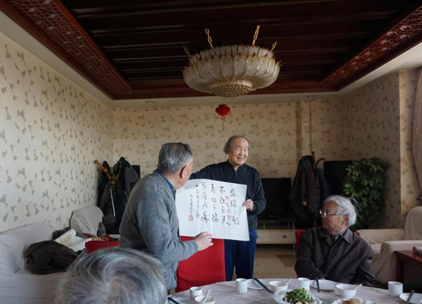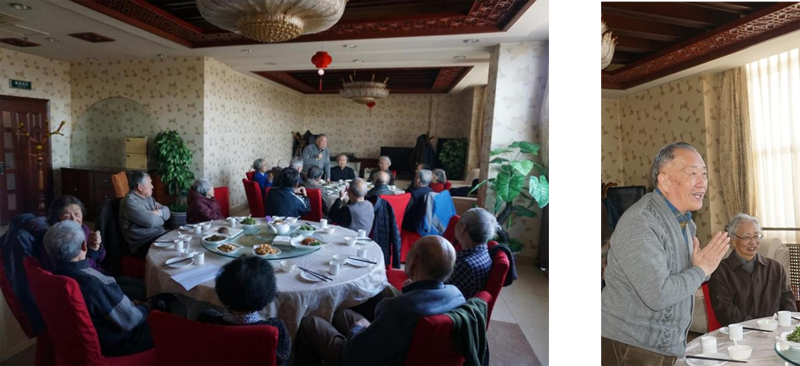 聚餐会上,大家也祝贺今年80周岁的景荣林老师,以及在12月16日前后过生日的王永生、孟广礼和叶慧荣老师。他们和尹宏老师一起,吃了餐厅专门做的长寿面。大家相约将来还要为尹宏老师的95岁和100岁生日祝寿!